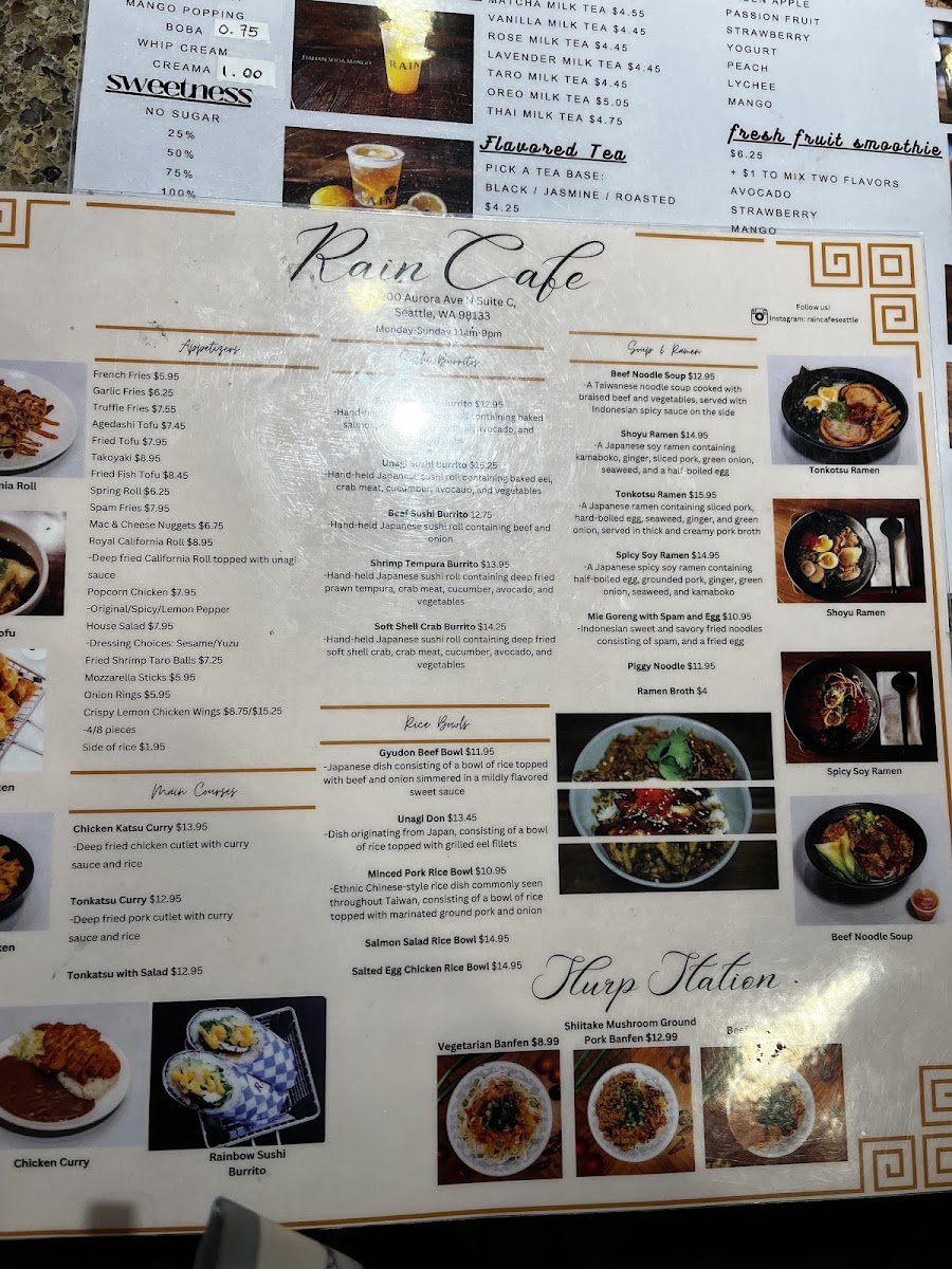 If you're craving something fresh and full of flavor, Slurp Station 嗦粉小站 at Rain Cafe is the place to be. Nestled at 13200 Aurora Ave N, Suite C, in Seattle, WA, this cozy spot brings the best of Chinese rice noodles straight to your bowl. Their menu offers a variety of mouthwatering noodle dishes, from light and savory broths to more hearty, flavor-packed options. Each dish is crafted with fresh ingredients that create the perfect balance of taste and texture, whether you're a fan of classic flavors or eager to try something new.